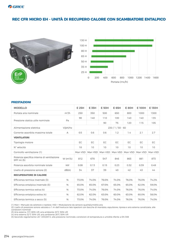(5) Secondo regolamento UE 1253/2014: alla pressione nominale; condizioni di temperatura e umidità riferite a EN 308