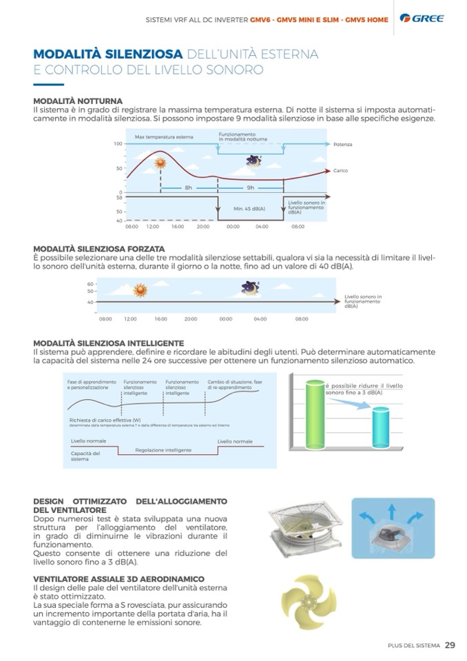 camente in modalità silenziosa. Si possono impostare 9 modalità silenziose in base alle specifiche esigenze.