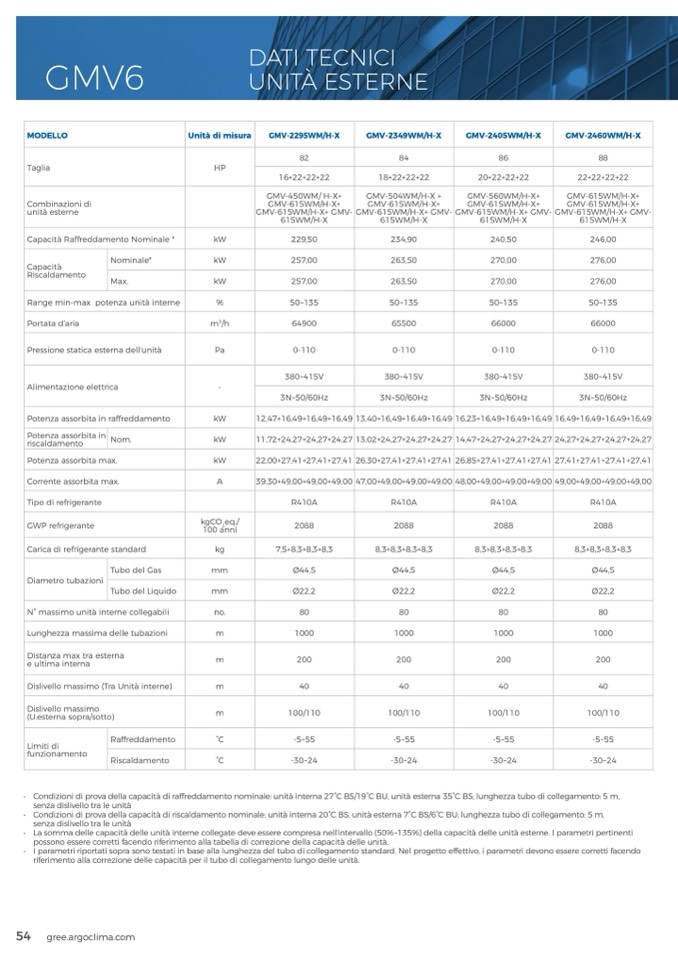 • I parametri riportati sopra sono testati in base alla lunghezza del tubo di collegamento standard. Nel progetto effettivo, i parametri devono essere corretti facendo