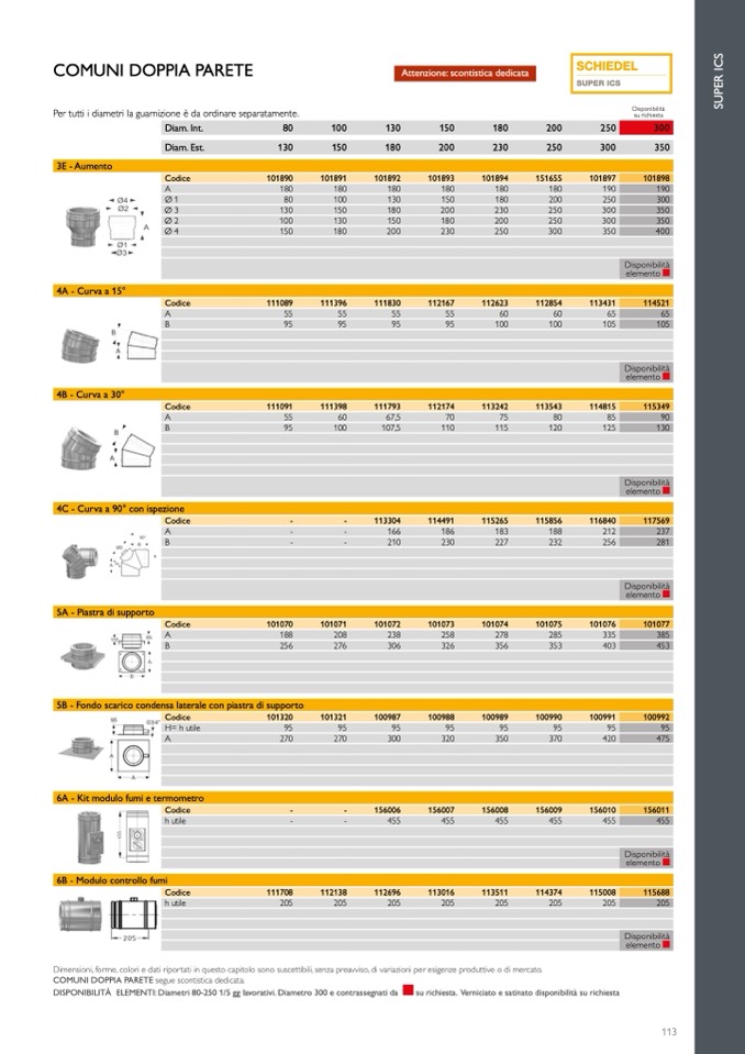 DISPONIBILITÀ ELEMENTI: Diametri 80-250 1/5 gg lavorativi. Diametro 300 e contrassegnati da