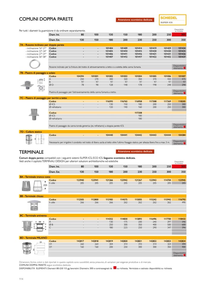 DISPONIBILITÀ ELEMENTI: Diametri 80-250 1/5 gg lavorativi. Diametro 300 e contrassegnati da