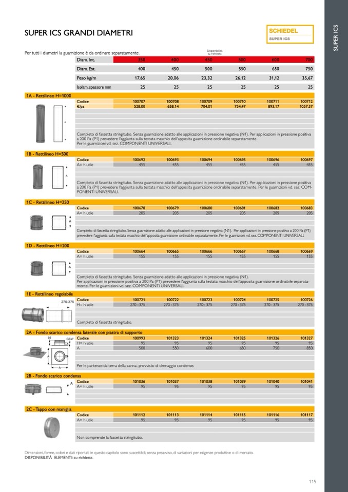 a 200 Pa (P1) prevedere l'aggiunta sulla testata maschio dell'apposita guarnizione ordinabile separatamente. Per le guarnizioni vd. sez. COM-