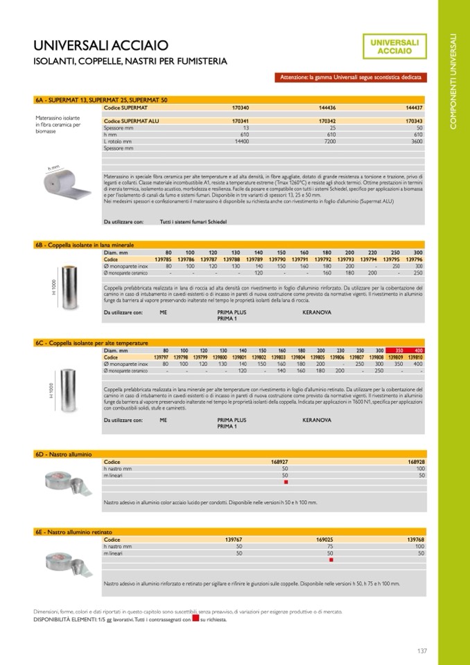 e per l'isolamento di canali da fumo e sistemi fumari. Disponibile in tre varianti di spessori: 13, 25 e 50 mm.