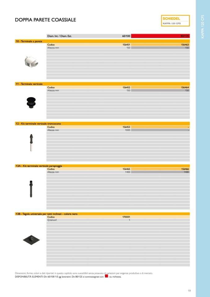 DISPONIBILITÀ ELEMENTI: Dn 60/100 1/5 gg lavorativi. Dn 80/125 e contrassegnati con