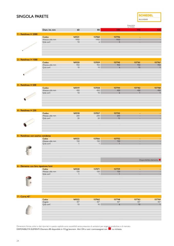 DISPONIBILITÀ ELEMENTI: Diametro 80 disponibile in 1/5 gg lavorativi. Altri DN e tutti i contrassegnati con