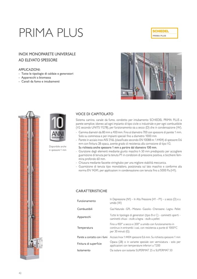 parete semplice; idoneo ad ogni impianto di tipo civile o industriale e per ogni combustibile