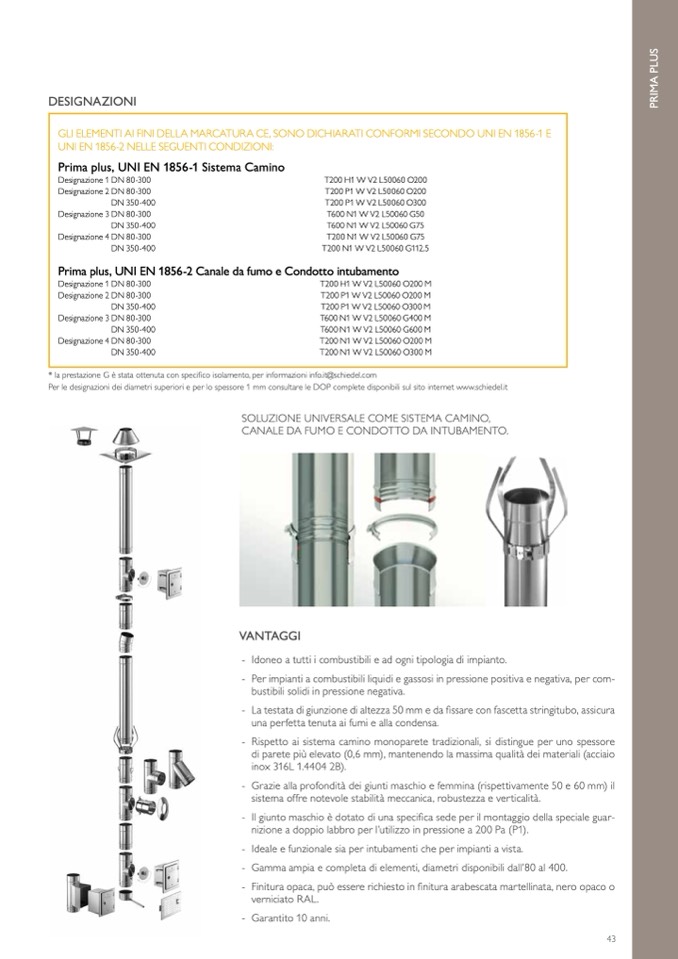 Prima plus, UNI EN 1856-1 Sistema Camino