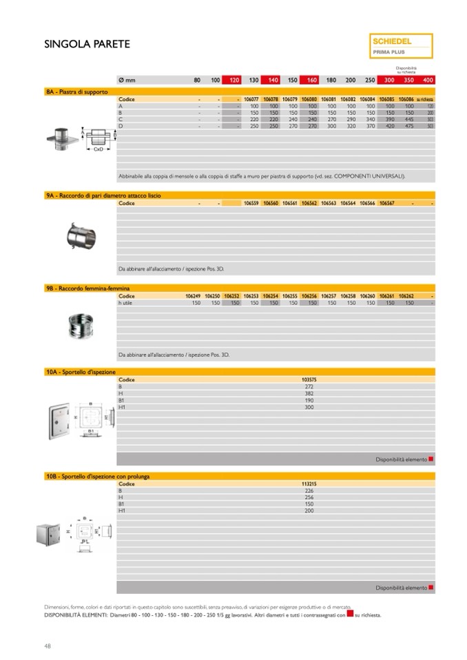 DISPONIBILITÀ ELEMENTI: Diametri 80 - 100 - 130 - 150 - 180 - 200 - 250 1/5 gg lavorativi. Altri diametri e tutti i contrassegnati con