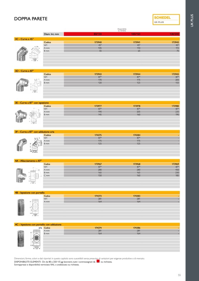 DISPONIBILITÀ ELEMENTI: Dn da 80 a 250 1/5 gg lavorativi, tutti i contrassegnati da