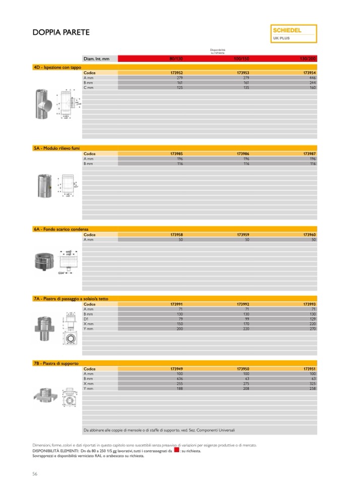 DISPONIBILITÀ ELEMENTI: Dn da 80 a 250 1/5 gg lavorativi, tutti i contrassegnati da