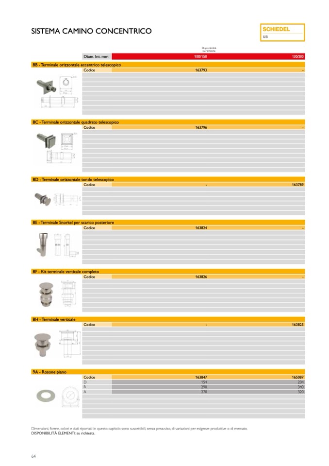 DISPONIBILITÀ ELEMENTI: su richiesta.
