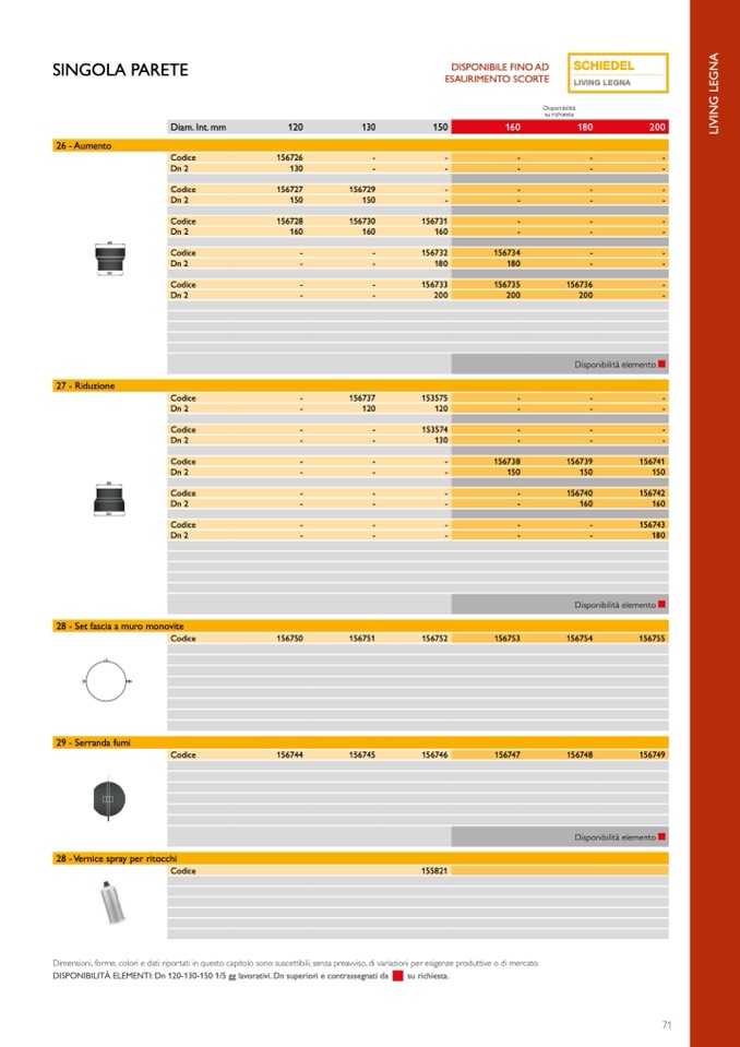 DISPONIBILITÀ ELEMENTI: Dn 120-130-150 1/5 gg lavorativi. Dn superiori e contrassegnati da