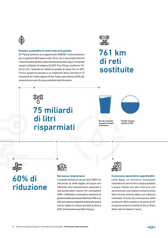 riduzione delle perdite nella distribuzione dell'acqua. Fornendo
