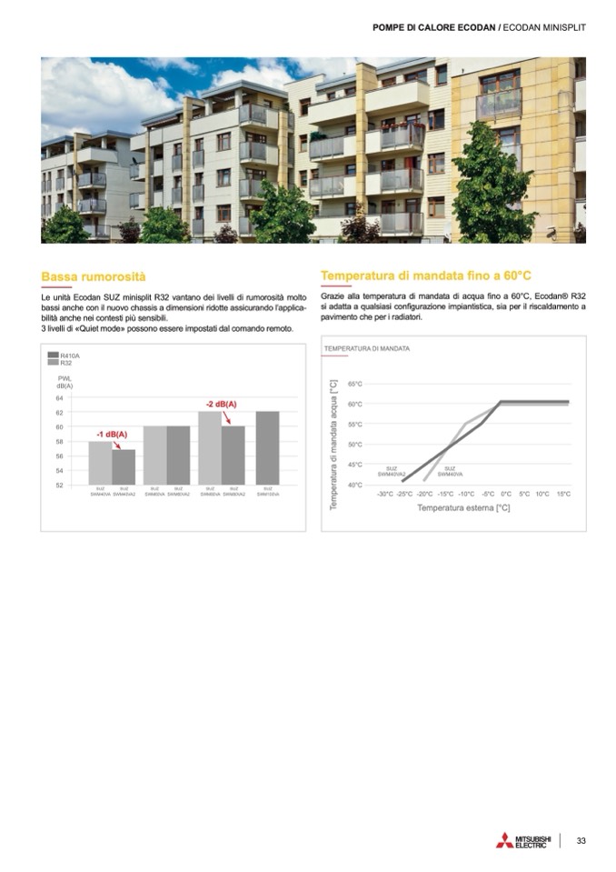 Le unità Ecodan SUZ minisplit R32 vantano dei livelli di rumorosità molto