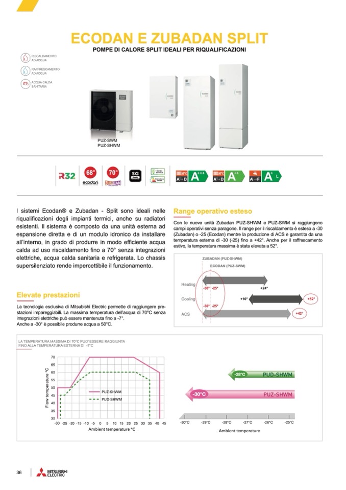 (Zubadan) o -25 (Ecodan) mentre la produzione di ACS