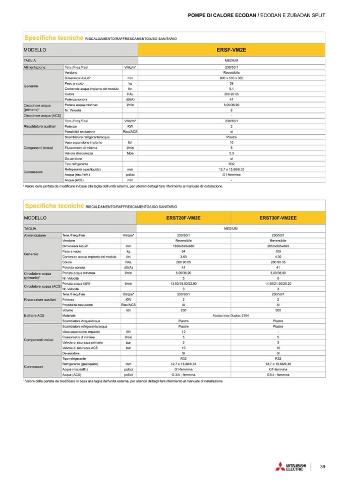 POMPE DI CALORE ECODAN / ECODAN E ZUBADAN SPLIT
