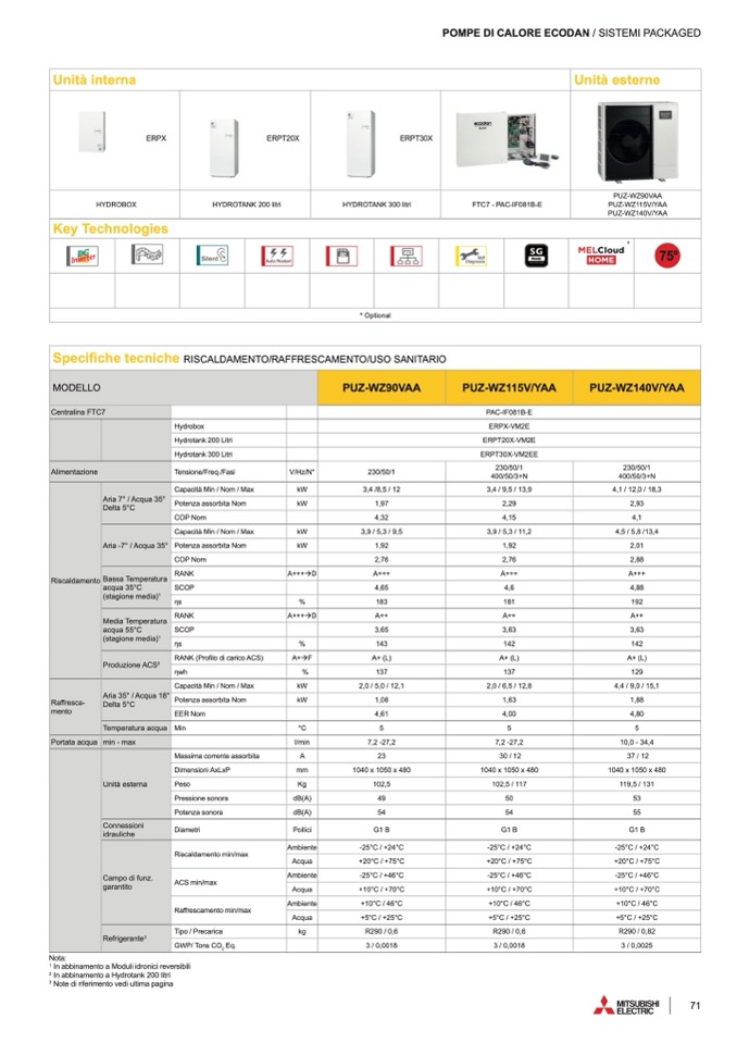 POMPE DI CALORE ECODAN / SISTEMI PACKAGED