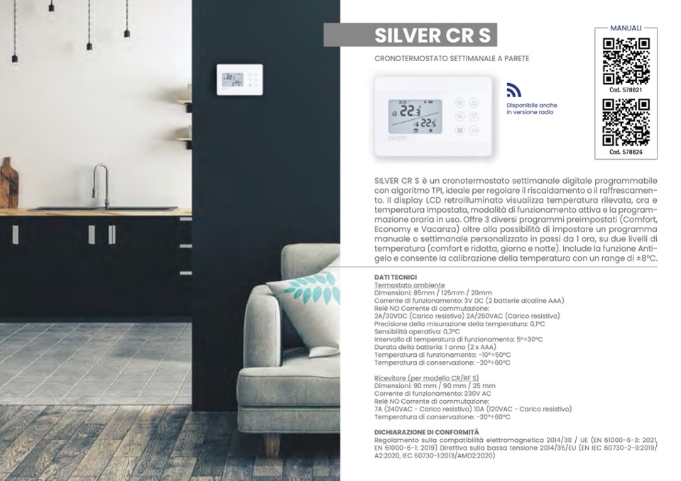 SILVER CR S è un cronotermostato settimanale digitale programmabile