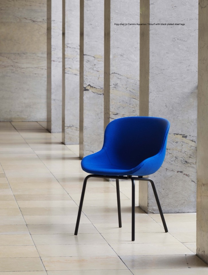 Hyg chair in Camira Aquarius / Smurf with black plated steel legs