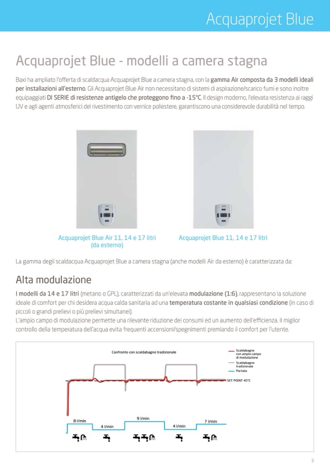 Baxi ha ampliato l'offerta di scaldacqua Acquaprojet Blue a camera stagna, con la gamma Air composta da 3 modelli ideali