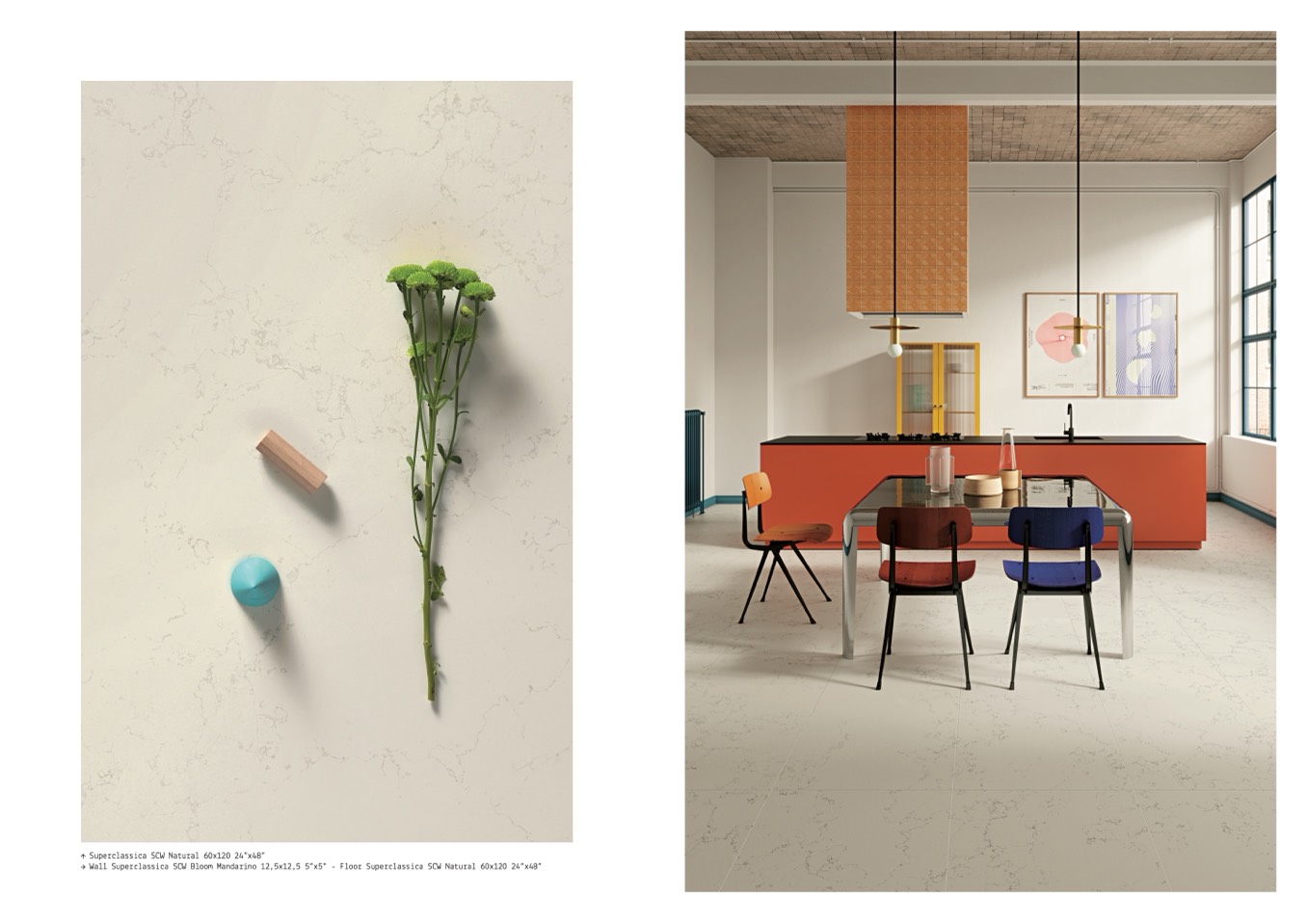 � Wall Superclassica SCW Bloom Mandarino 12,5x12,5 5”x5” - Floor Superclassica SCW Natural 60x120 24”x48”