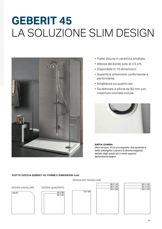 PIATTO DOCCIA GEBERIT 45: FORME E DIMENSIONI (cm)