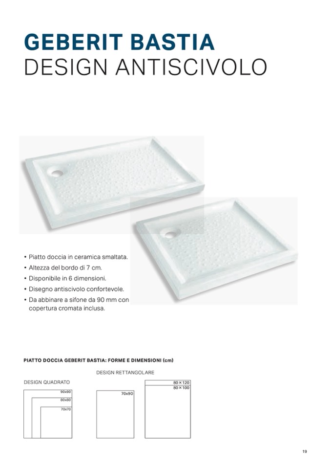 PIATTO DOCCIA GEBERIT BASTIA: FORME E DIMENSIONI (cm)