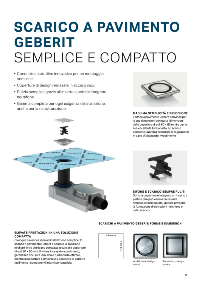 di soli 80 × 80 mm. Il sifone incassato a pavimento,