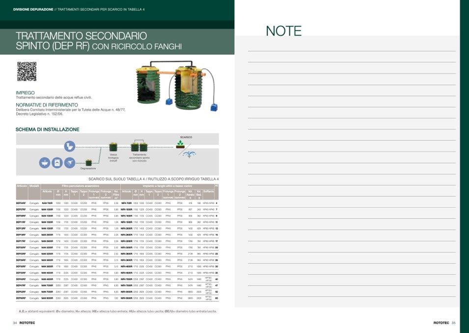 A.E.= abitanti equivalenti: Ø= diametro; H= altezza; HE= altezza tubo entrata; HU= altezza tubo uscita; ØE/U= diametro tubo entrata/uscita.