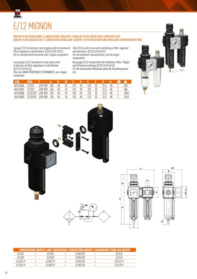 The E/12 are all-in-one units combining a filter, regulator