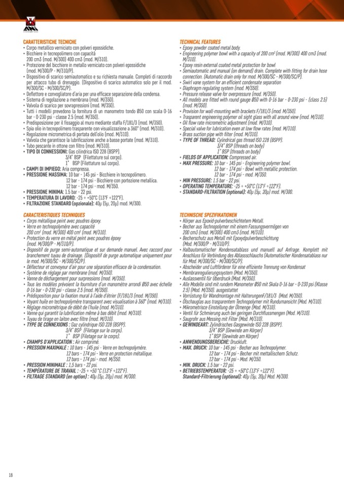 Standard-Filtrierung (optional): 40μ (5μ, 20μ) Mod. M/300.