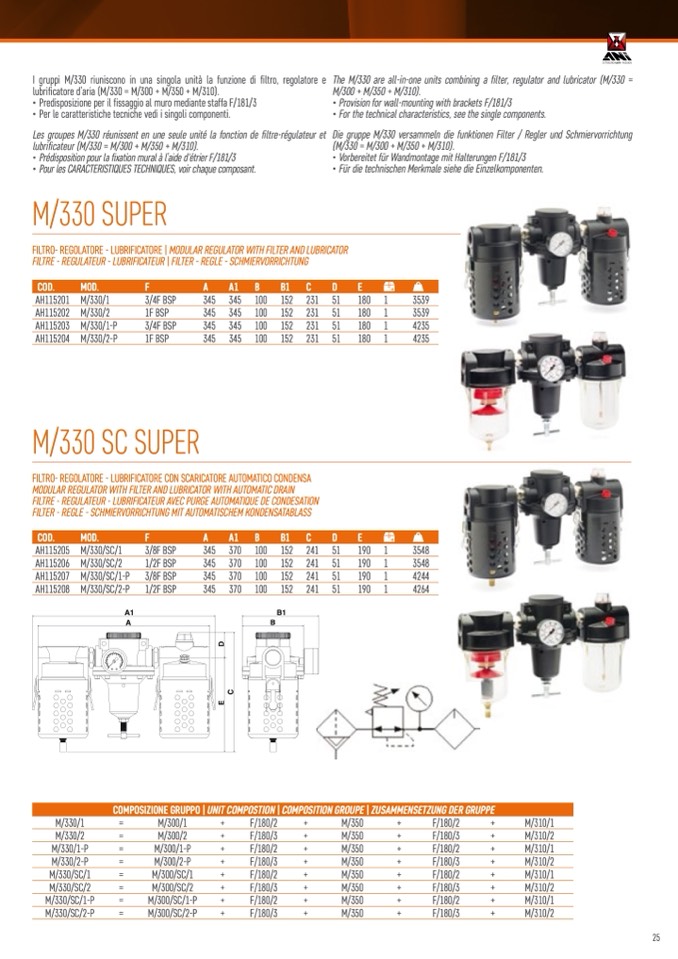 lubrificatore d’aria (M/330 = M/300 + M/350 + M/310).