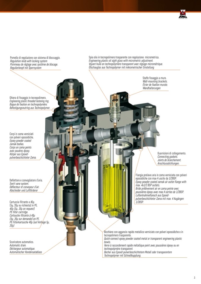 Spia olio in tecnopolimero trasparente con regolazione micrometrica.