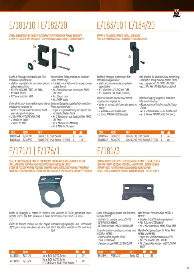 zincata 20/10 per filtri modulari e serie for modular filters and 31/I series