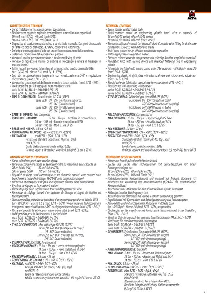 • FILTRAGE : mod E/10 - E/20 - E/14 - E/24