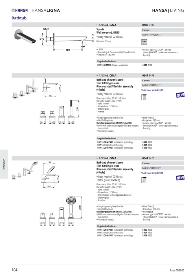 • Ø 40 mm ceramic cartridge for flow and tempera-
