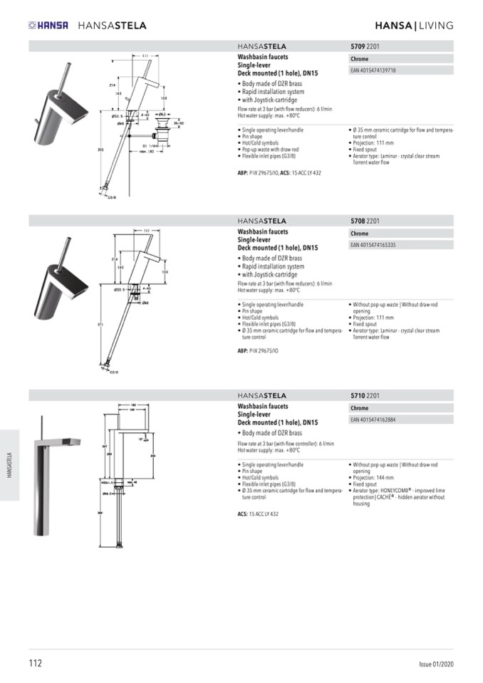 • Ø 35 mm ceramic cartridge for flow and tempera-