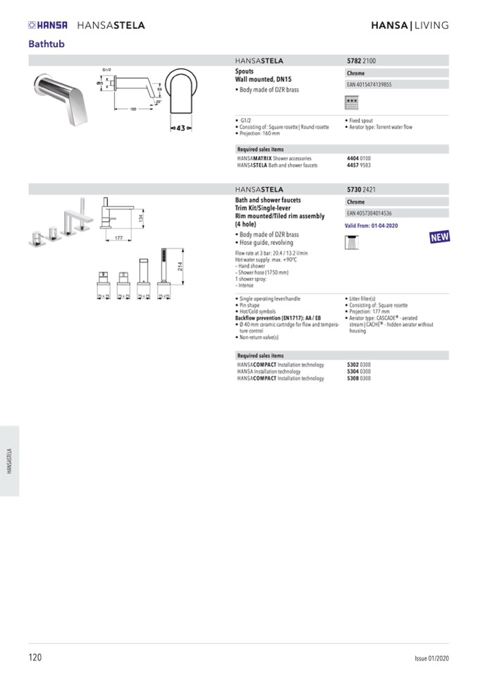 • Ø 40 mm ceramic cartridge for flow and tempera-