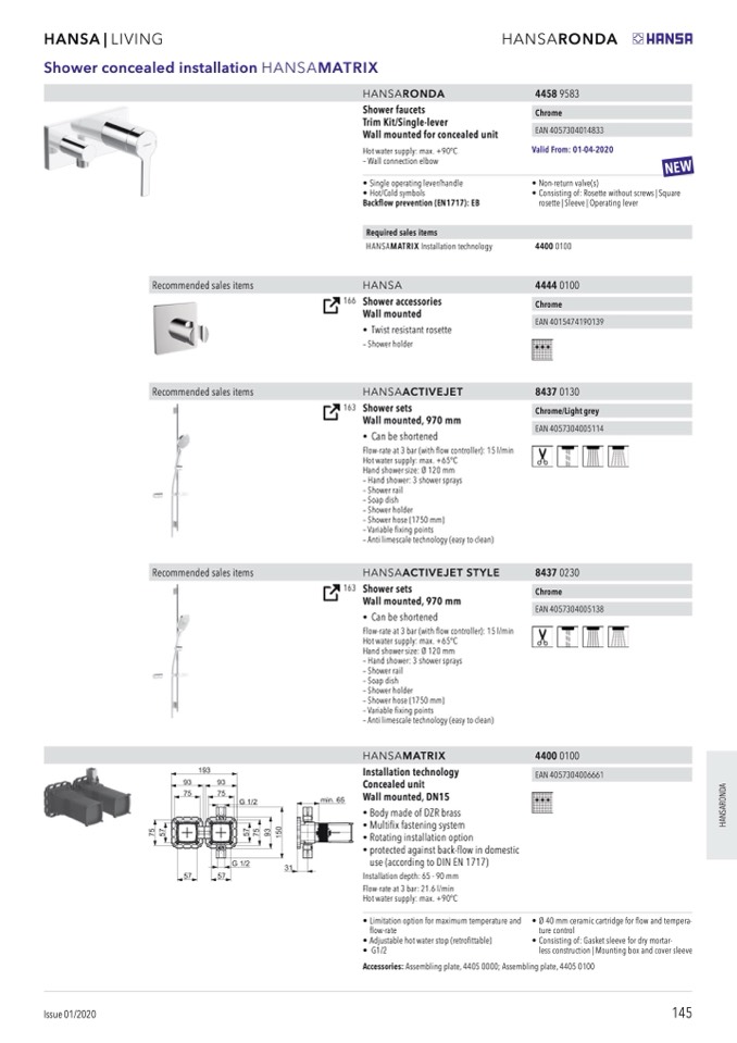 • Ø 40 mm ceramic cartridge for flow and tempera-