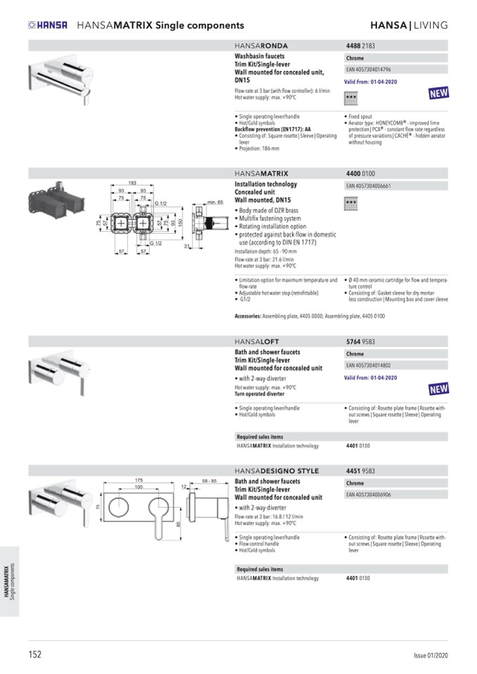 • Ø 40 mm ceramic cartridge for flow and tempera-