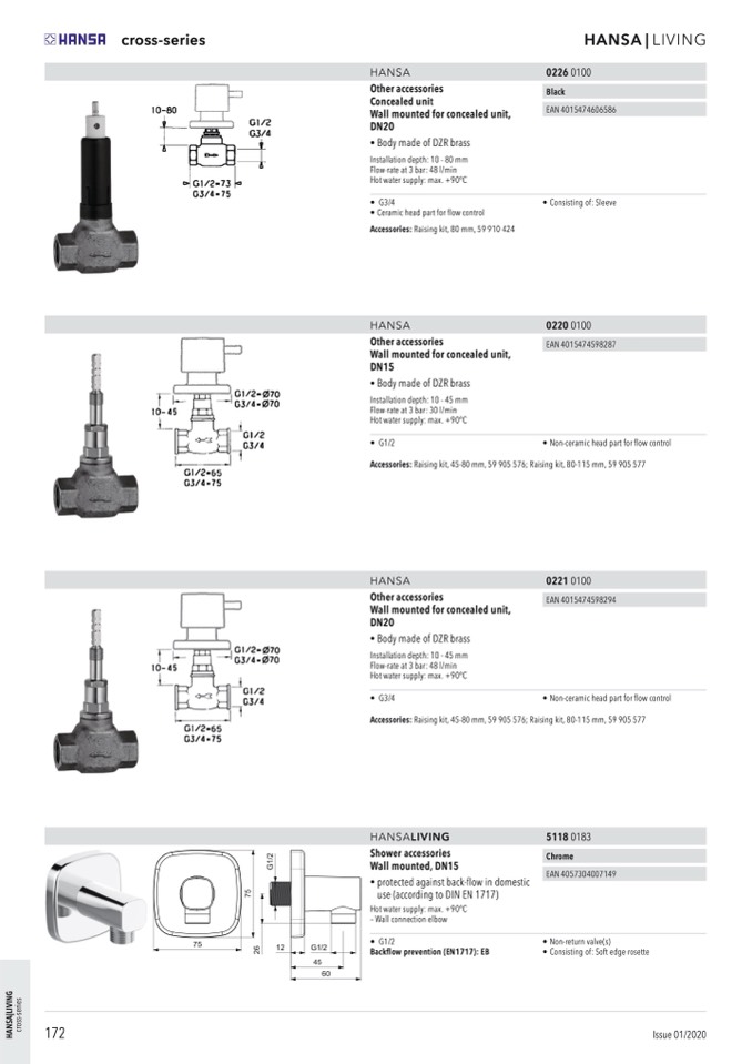 Accessories: Raising kit, 45-80 mm, 59 905 576; Raising kit, 80-115 mm, 59 905 577
