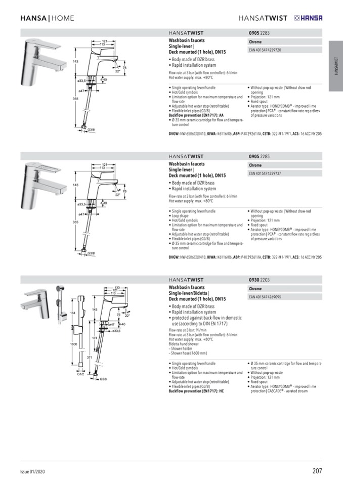 DVGW: NW-6506CQ0410, KIWA: K6116/06, ABP: P-IX 29261/IA, CSTB: 322-M1-19/1, ACS: 16 ACC NY 205