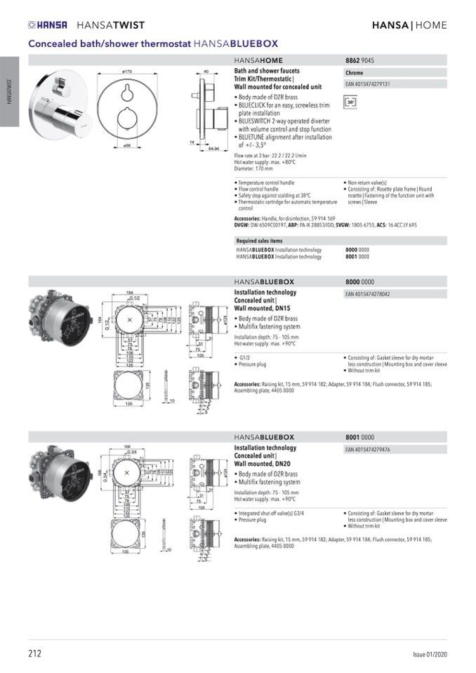 Concealed bath/shower thermostat HANSABLUEBOX