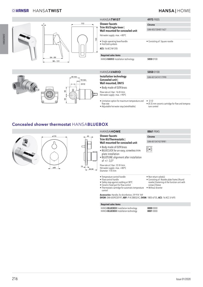 • Ø 35 mm ceramic cartridge for flow and tempera-