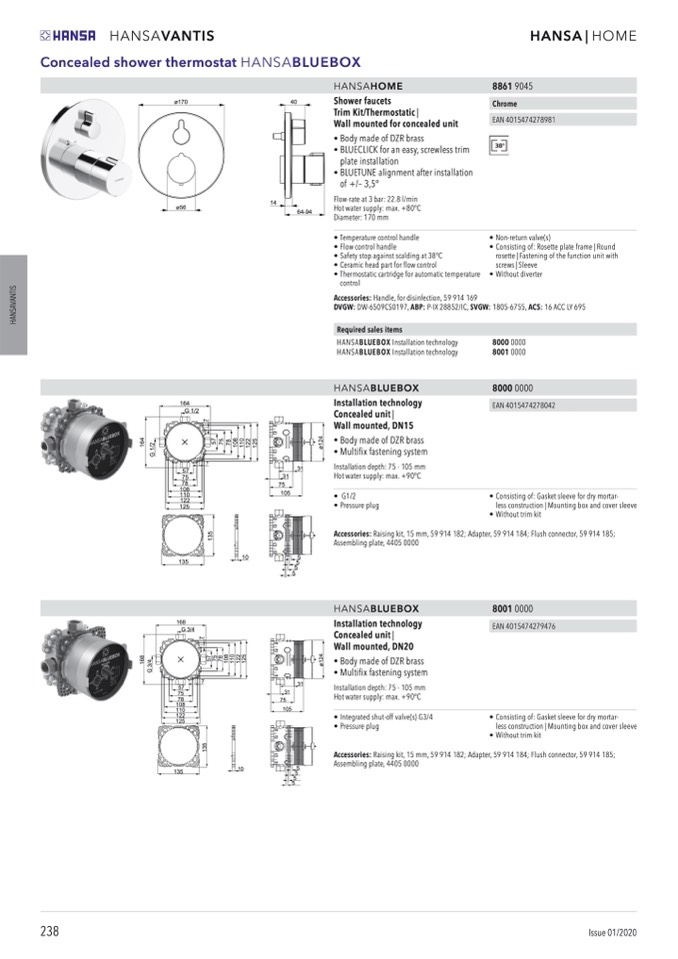 Accessories: Raising kit, 15 mm, 59 914 182; Adapter, 59 914 184; Flush connector, 59 914 185;