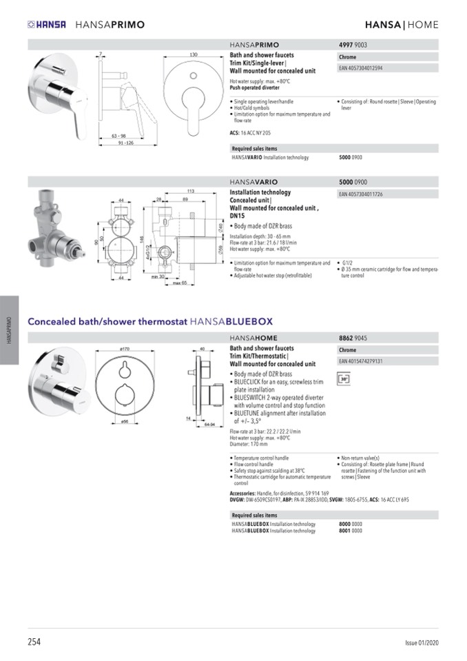 • Ø 35 mm ceramic cartridge for flow and tempera-