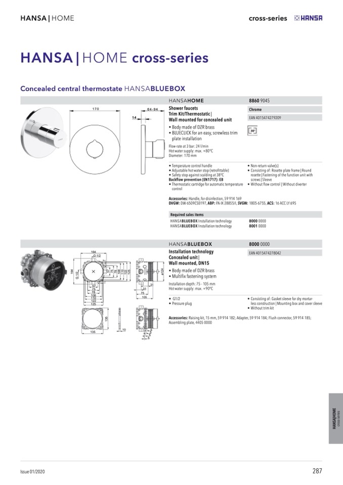 Concealed central thermostate HANSABLUEBOX