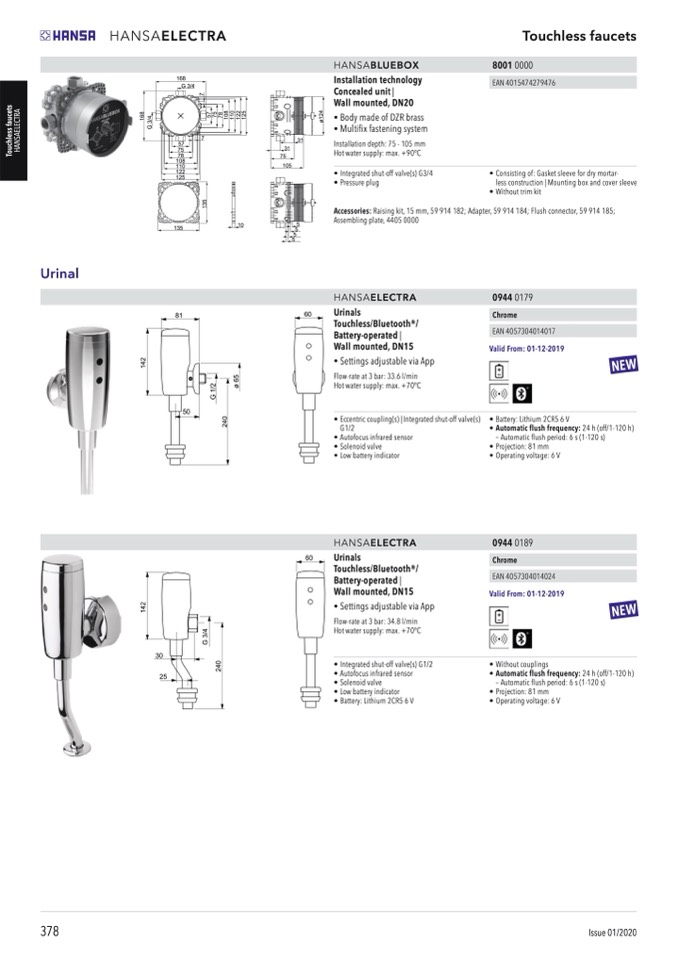 Accessories: Raising kit, 15 mm, 59 914 182; Adapter, 59 914 184; Flush connector, 59 914 185;