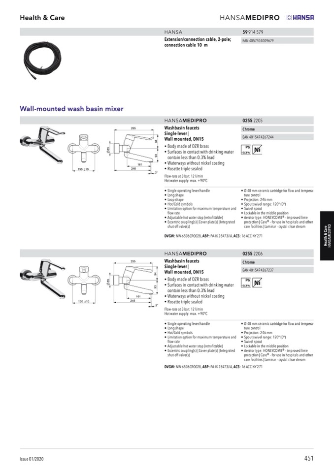• Ø 48 mm ceramic cartridge for flow and tempera-