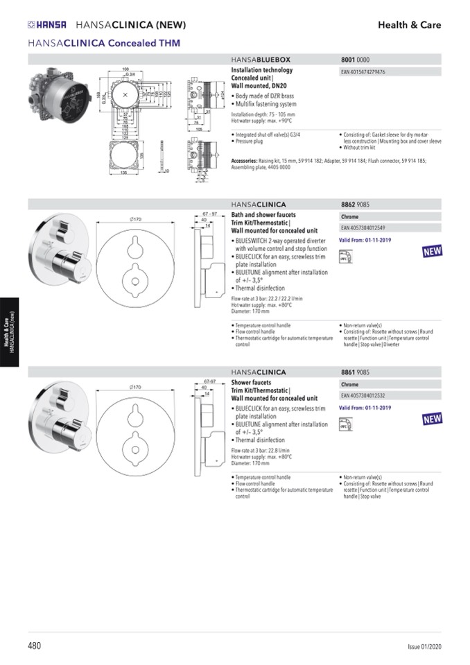 Accessories: Raising kit, 15 mm, 59 914 182; Adapter, 59 914 184; Flush connector, 59 914 185;